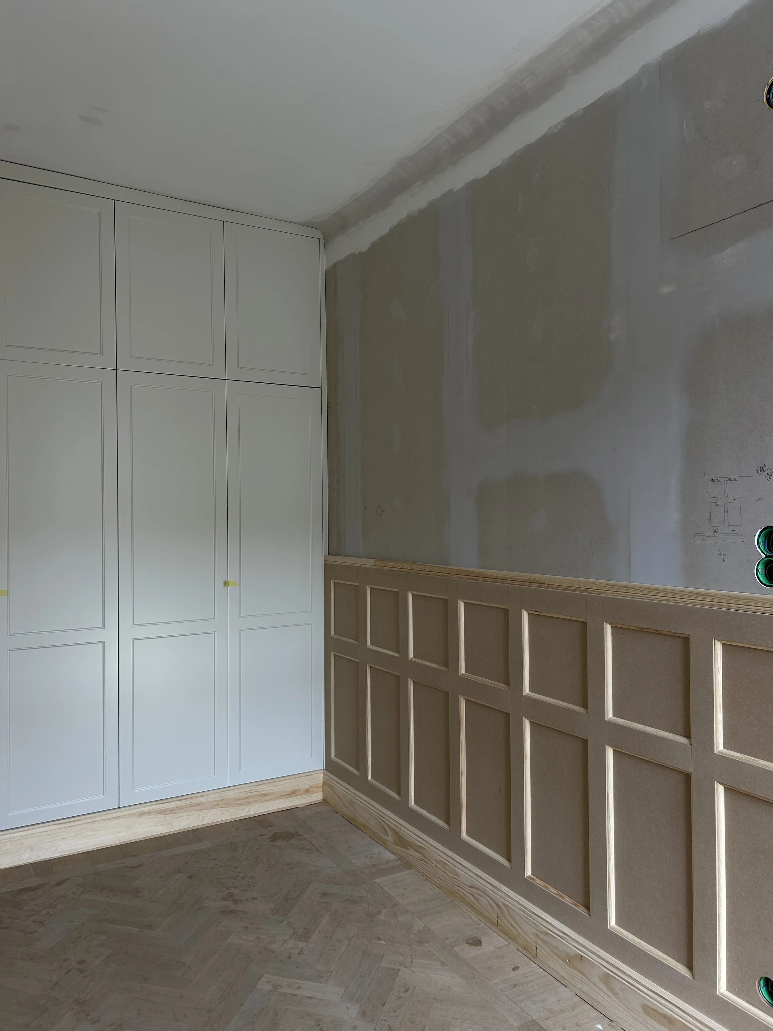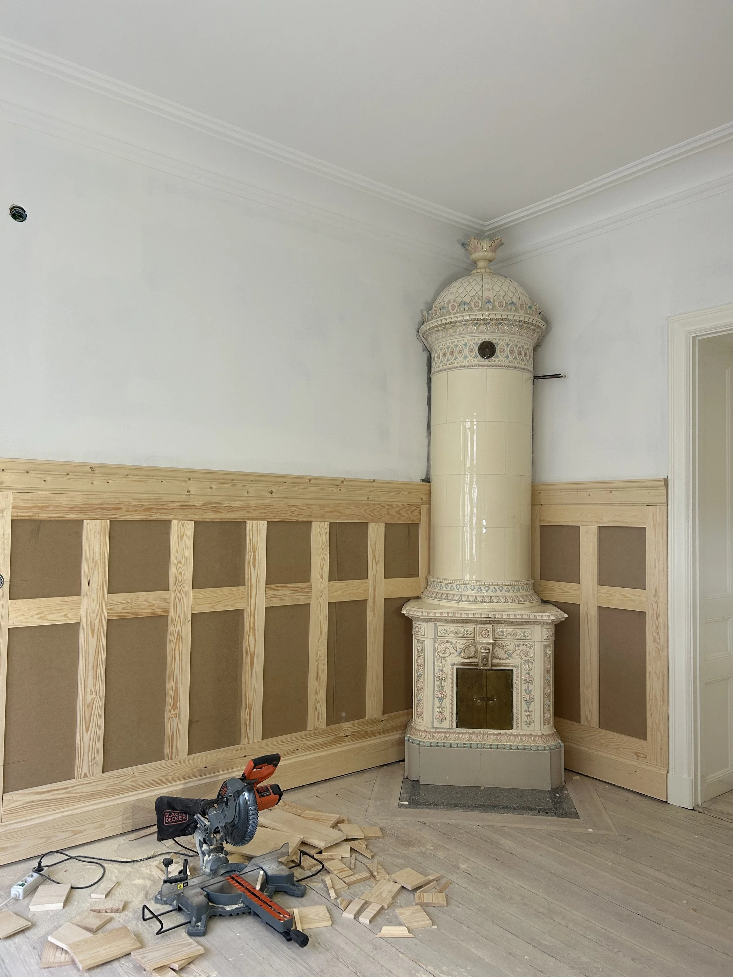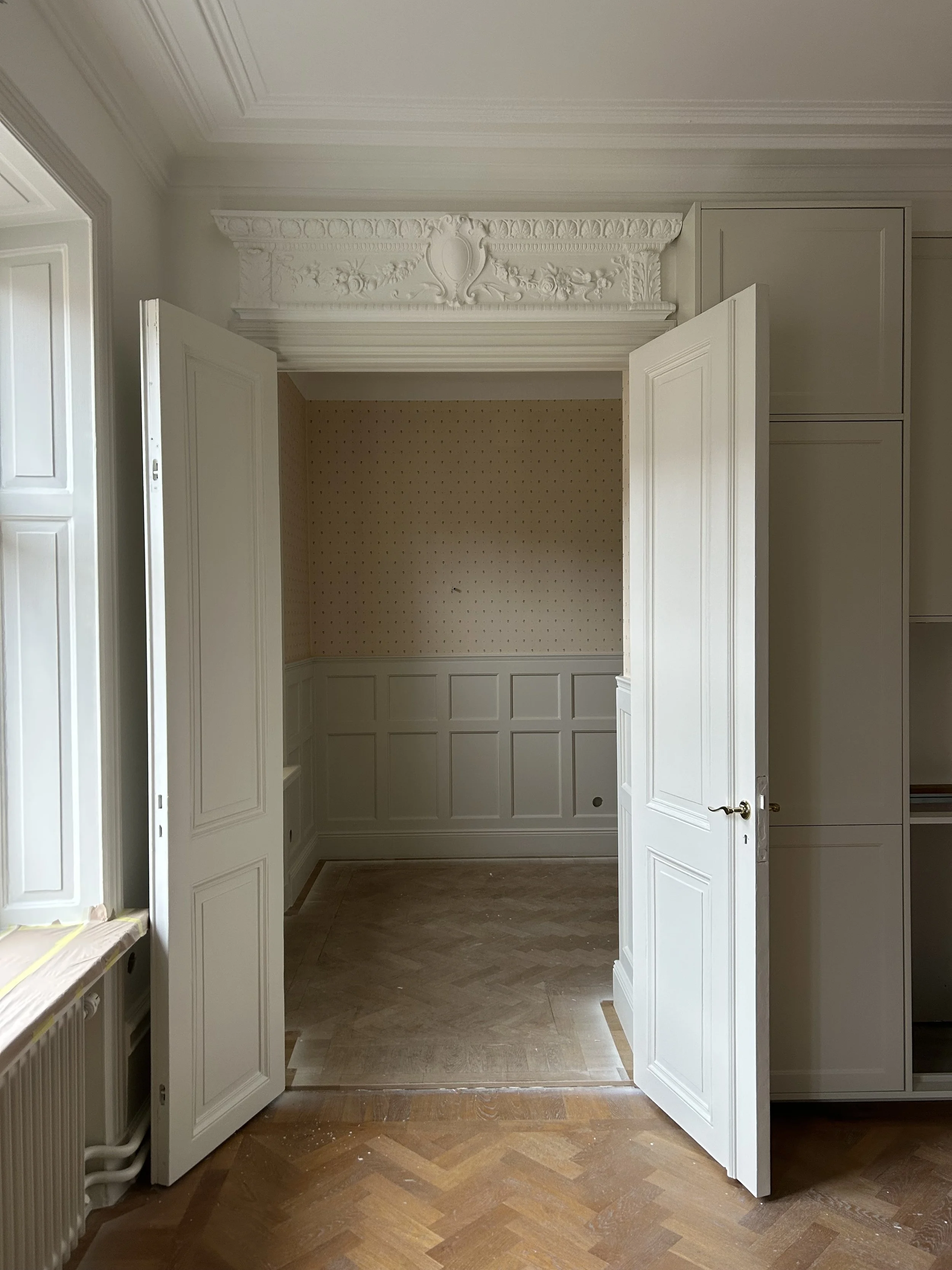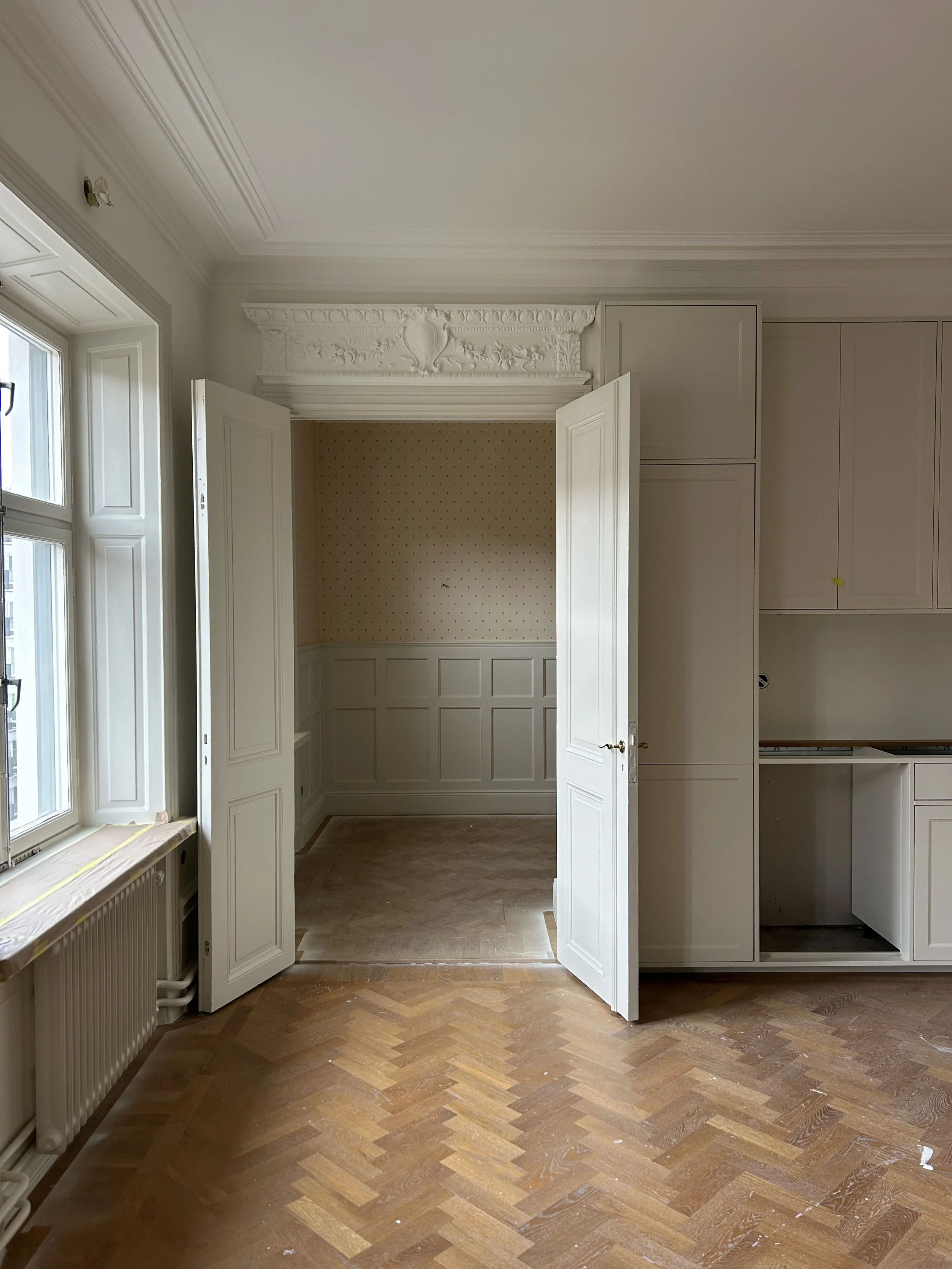 Bröstpaneler byggda i sekelskifteslägenhet på Södermalm. Från design och finsnickeri till ett färdigt resultat.